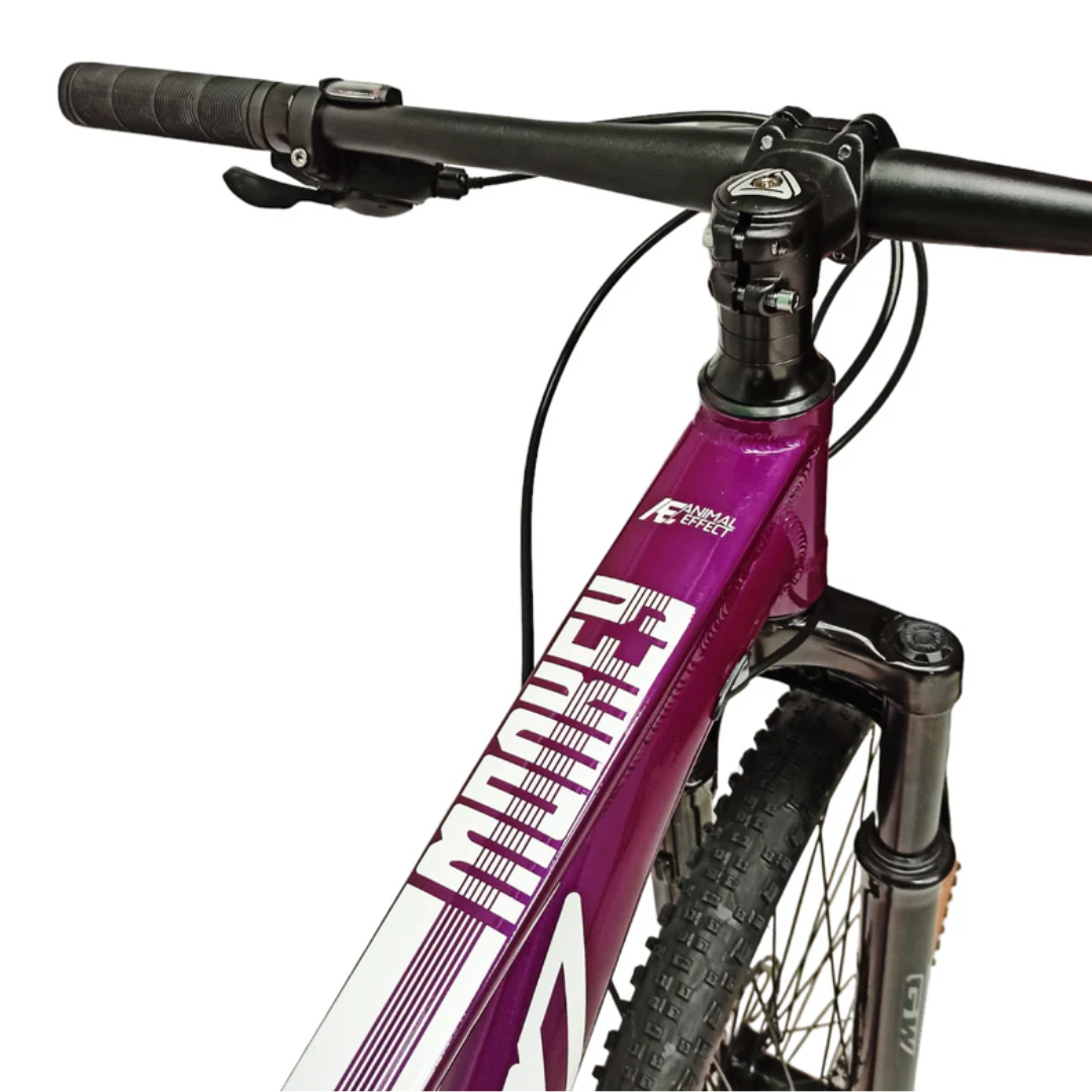 La GW Monkey 29 en color (violeta) es una bicicleta de montaña recreativa diseñada para principiantes, ideal para rutas urbanas, ciclopaseos y aventuras ligeras en terrenos irregulares. Destaca por su cuadro de aluminio ligero con cableado interno y una transmisión combinada de componentes GW y Shimano.